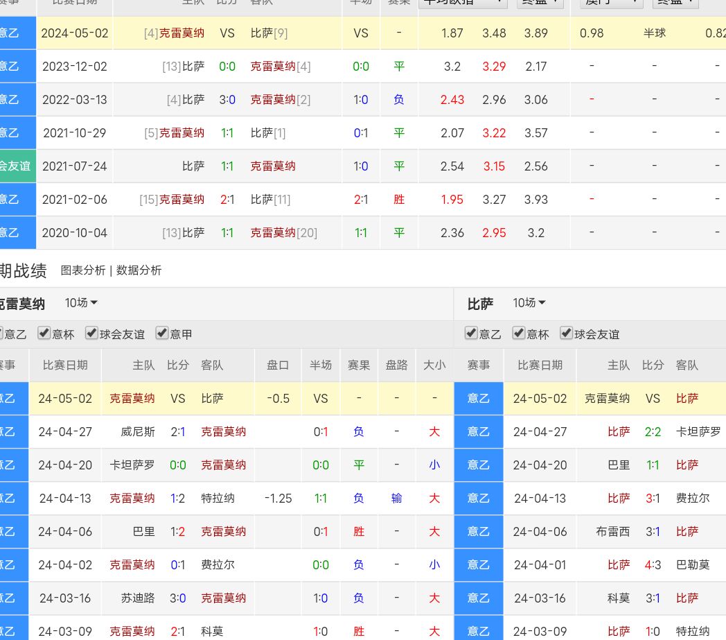 盘口大幅度示弱,主队直升希望不大,客队继续附加赛追分,初盘半一,近期状态不好强开半一,客队有抢分题材,这样示弱我觉得配合节目效果,引导客队客队可能性很大。克雷蒙让半球。