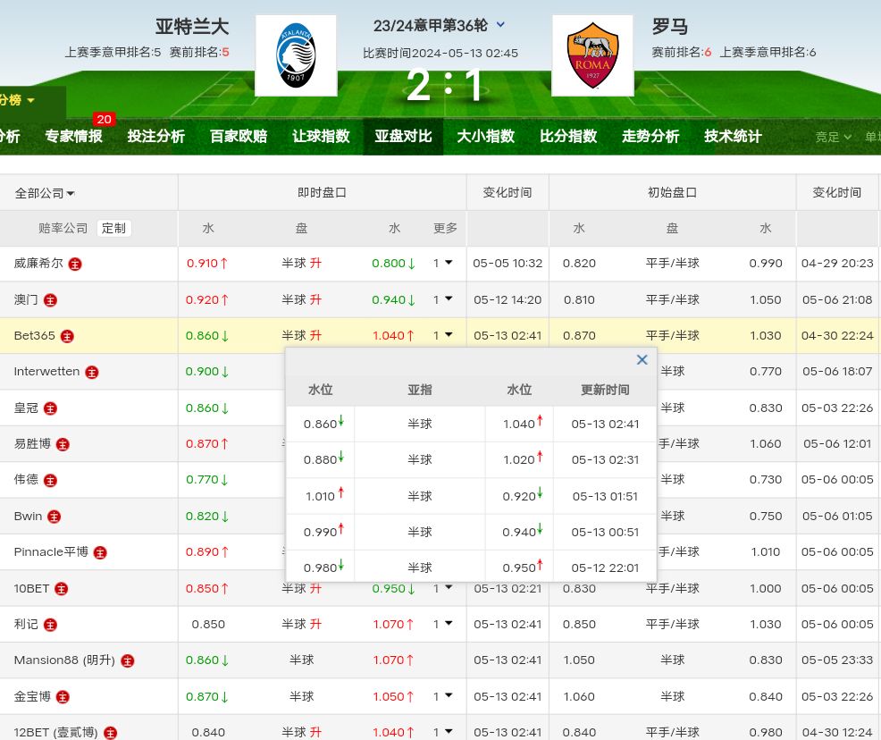 昨天亚特兰大升盘后一直高水,临场才降水,送赛果来看临场降水应该是正常降低赔付。
