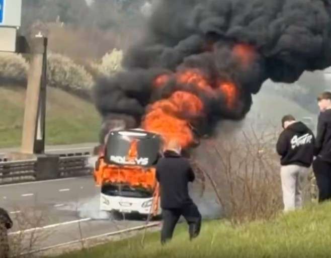 无人员伤亡!太阳报:载曼城球迷大巴在高速起火 温布利决赛前交通一