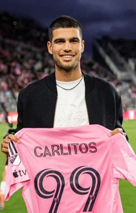 阿尔卡拉斯现身迈阿密国际队主场 与梅西眼神互动获赠99号球衣