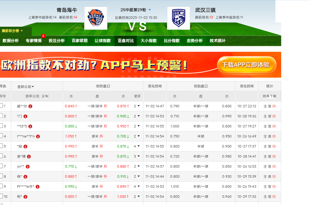 青岛赢球占据保级主动权,同时宣布长春降级。这个盘诱的太凶了。倾向