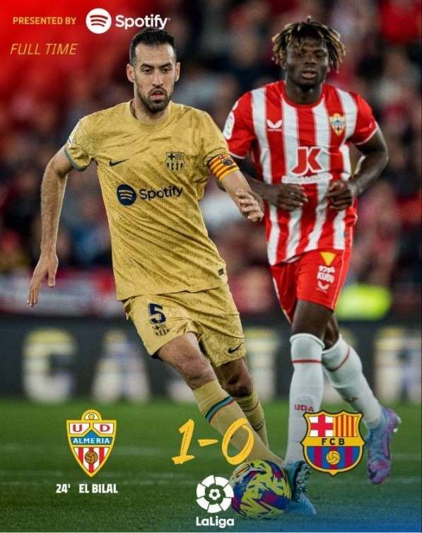 全场仅1脚射正 巴萨队史首次不敌阿尔梅里亚