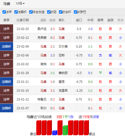 法甲前瞻:联赛前二直接对话 内少缺阵巴黎能否客胜马赛?