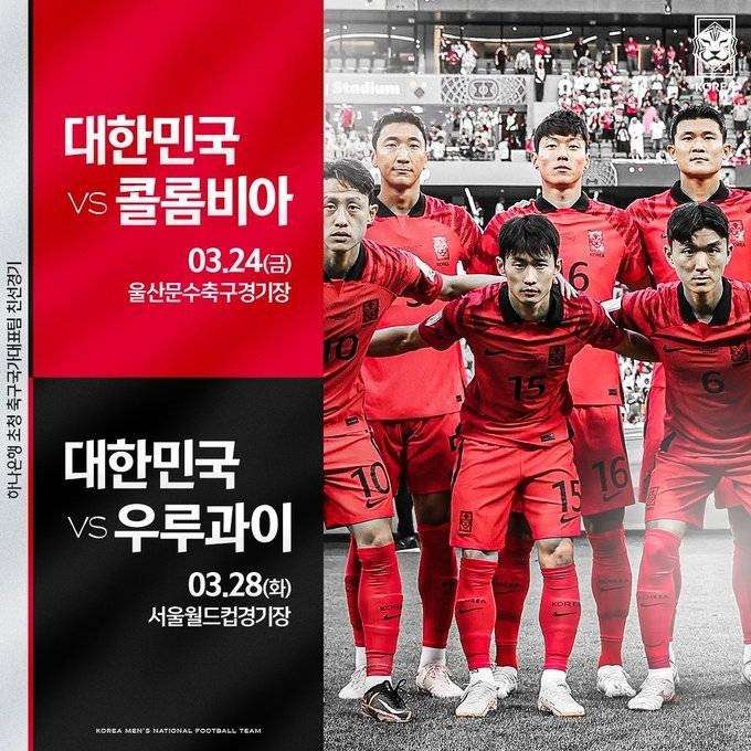 照日本赛程来一套!韩国队确定三月对阵乌拉圭、哥伦比亚