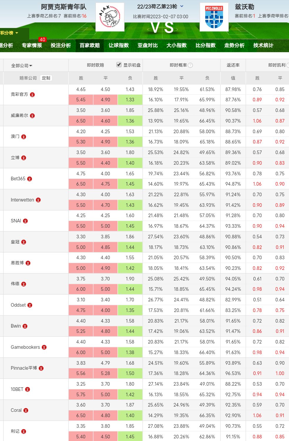 今天这场球没有弄,博彩公司整齐划一,兹沃勒联赛九连胜,武器八轮不