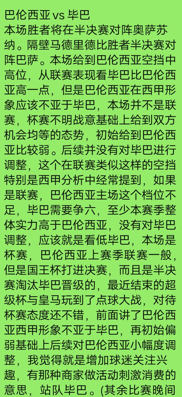 这是上一期国王杯的分析。本周末巴伦西亚主场打毕巴,出个题,有兴趣