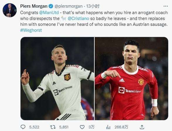 摩根:C罗的替代者像奥地利香肠 曼联为傲慢付出代价