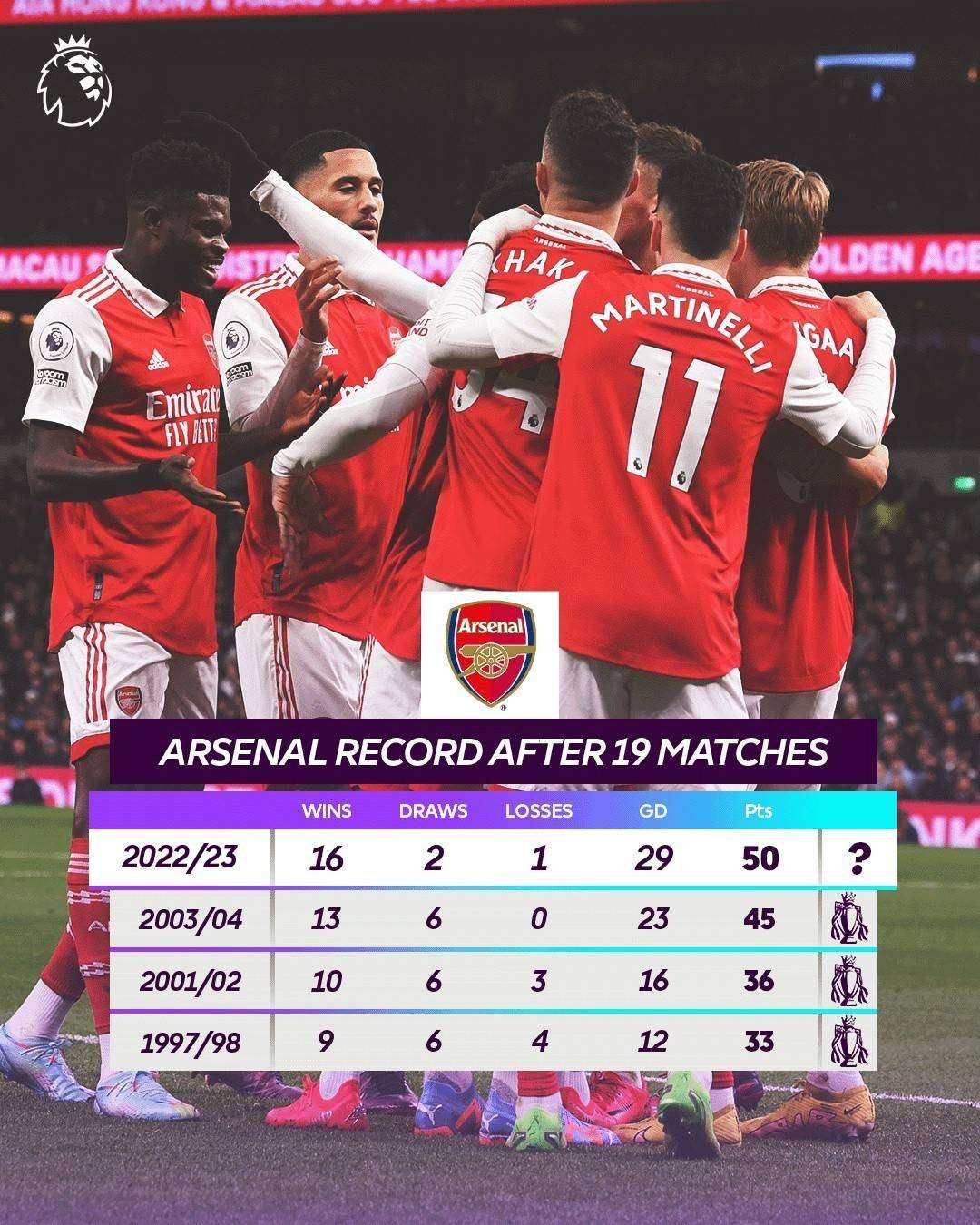 有望百分夺冠?阿森纳半程狂砍50分 超越不败赛季