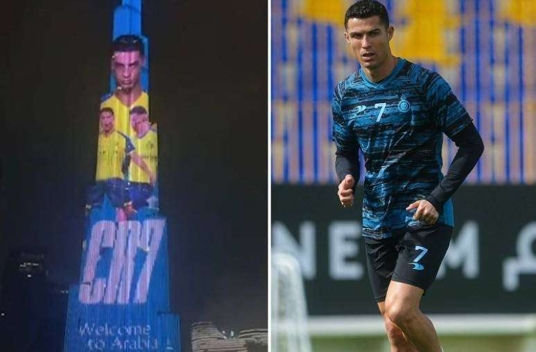 为梅罗之战预热 C罗画像被投射到沙特标志性建筑