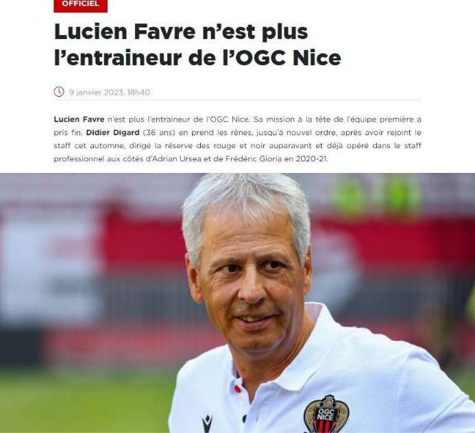 法国杯0-1不敌法丙球队 尼斯宣布主帅法夫尔下课