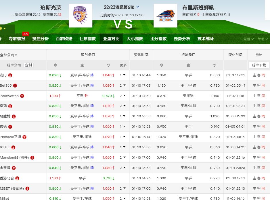初盘平手盘,上赛季在光荣主场干了两场也是平手盘,一场客升半球光荣