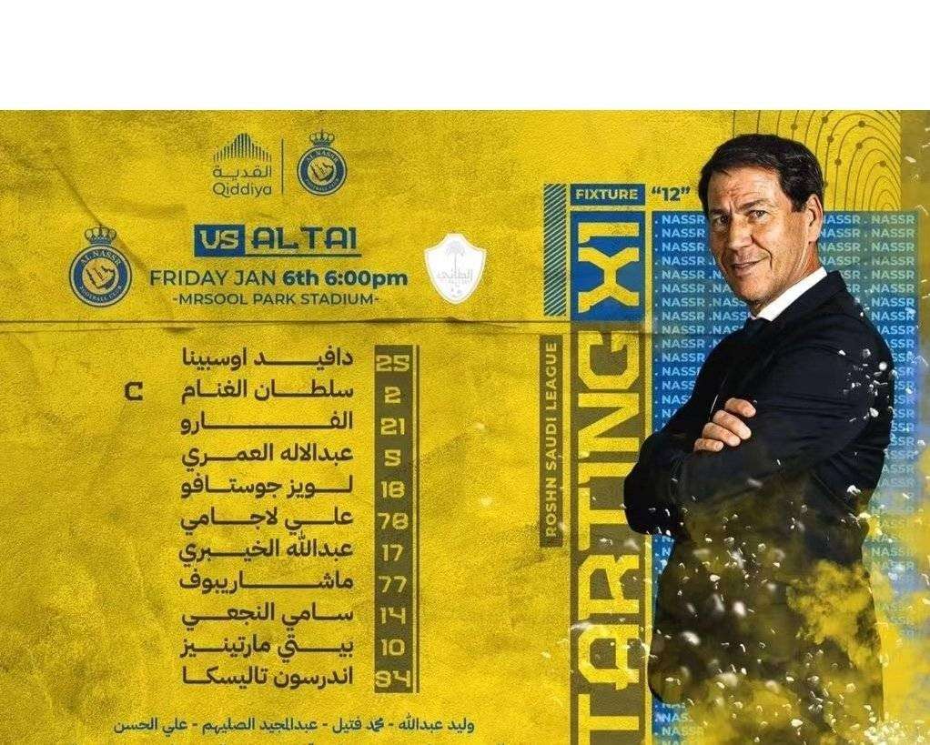 利雅得胜利vs阿尔泰首发出炉:C罗未进大名单