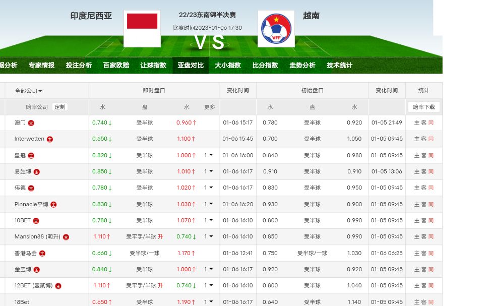 去年双方同组打平,本场让半球高水,泰国作为卫冕冠军小组赛打印尼也