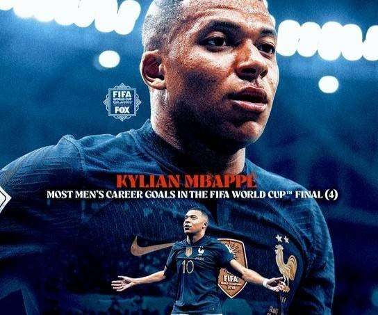 世界杯决赛单场打进3球 23岁姆巴佩成就历史第一人