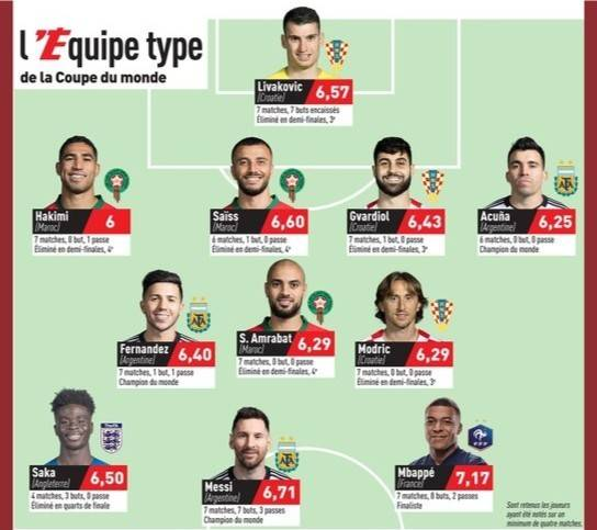队报评世界杯最佳阵容:梅西姆巴佩领衔 摩洛哥三人入选