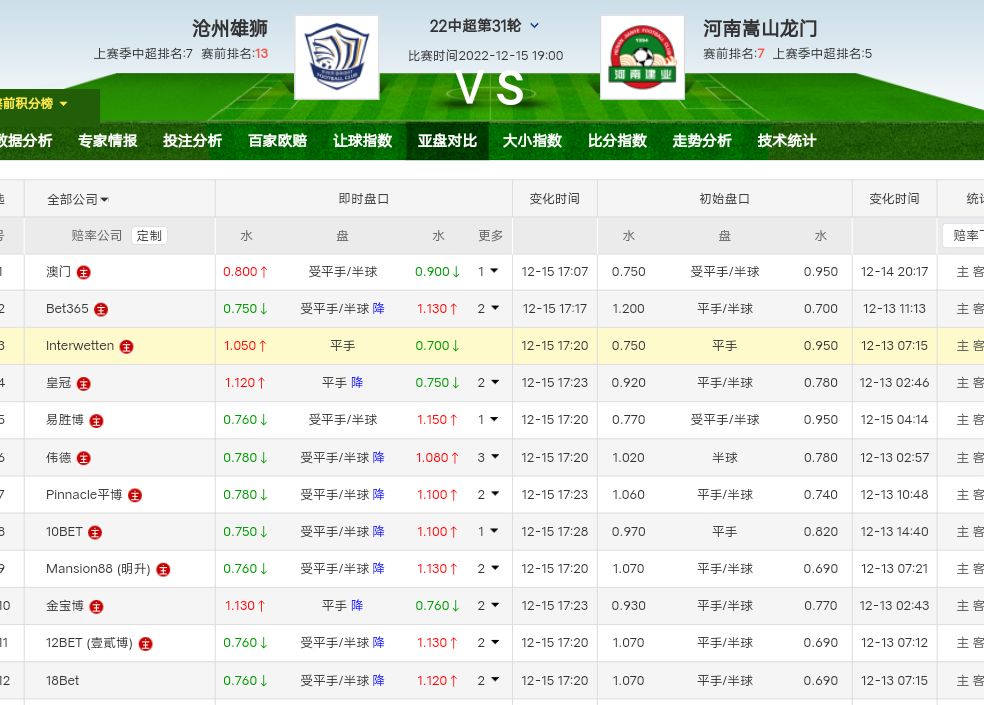 盘口反转,首回合河南3-0赢球,双方临省,河南状态一般,沧州表现