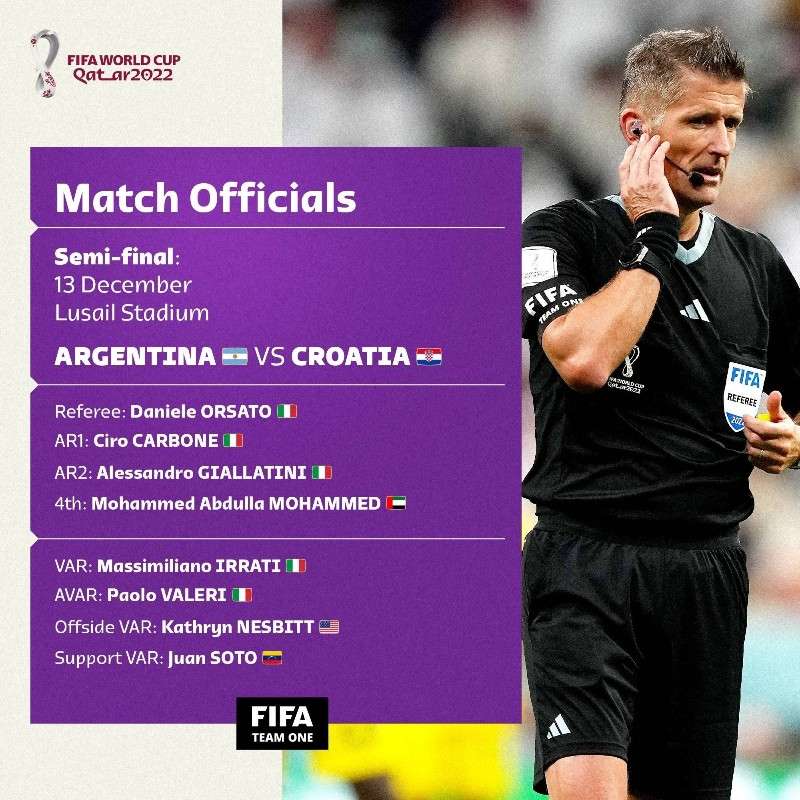 意大利名哨奥尔萨托执法阿根廷VS克罗地亚的半决赛