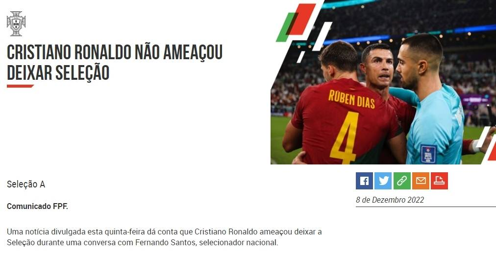 葡萄牙足协辟谣:C罗从未威胁退出国家队
