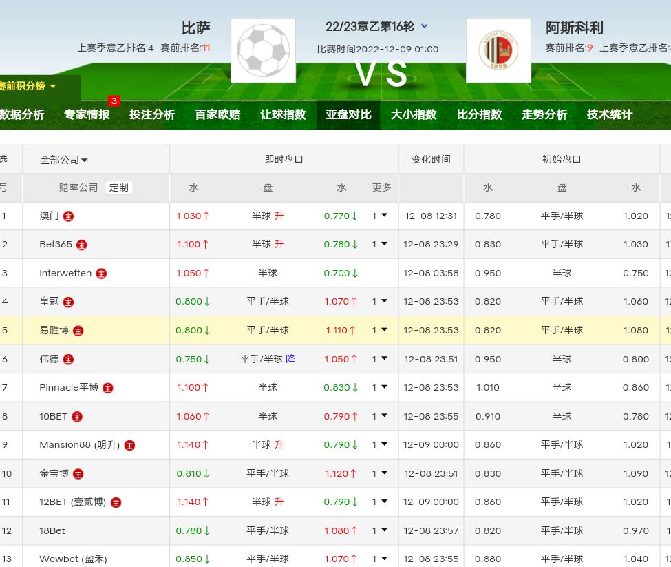 意乙联赛:比萨VS阿斯科利