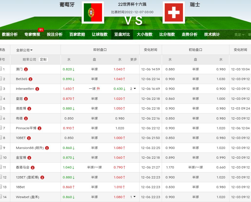 赛前半小时,葡萄牙这个也不是真正意义的低水,是中低水,初盘基本上