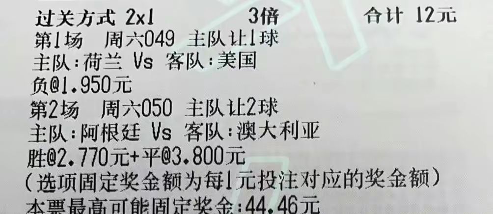 本届世界杯冷门只有两个赛果,1-0,2-1,其中2-1的赛果必定