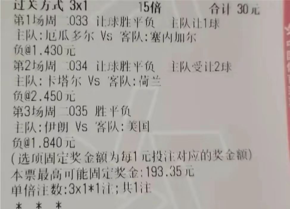 周二034 世界杯 卡塔尔VS荷兰