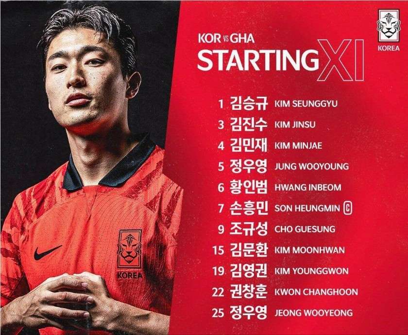 韩国vs加纳首发:孙兴慜领衔 金玟哉、郑优营出战