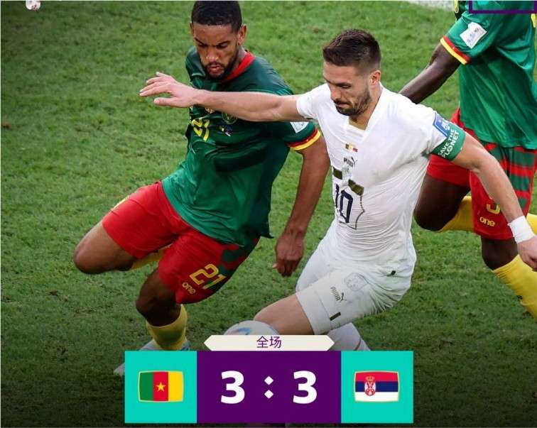 世界杯全场:痛失好局!塞尔维亚连失2球 3-3战平喀麦隆