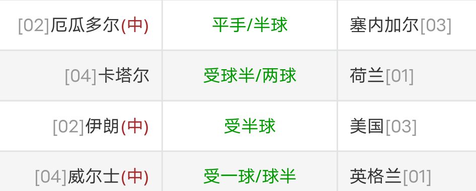 22世界杯分组赛 威尔士VS英格兰(基本数据)
