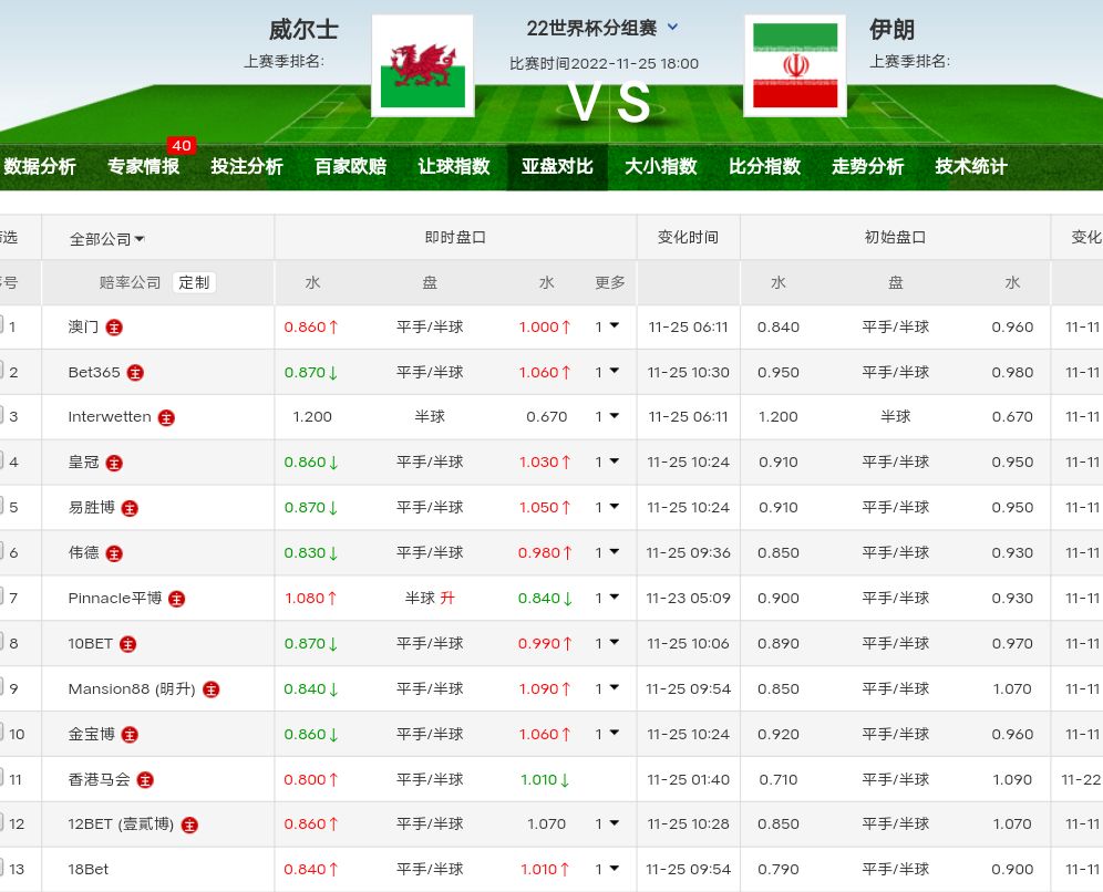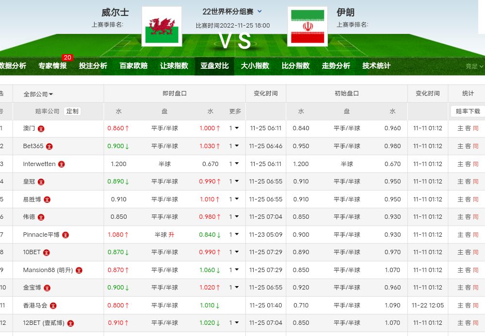 22世界杯分组赛 威尔士VS伊朗
