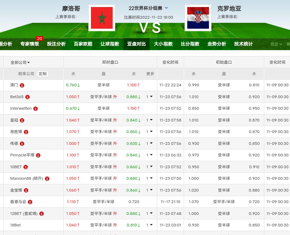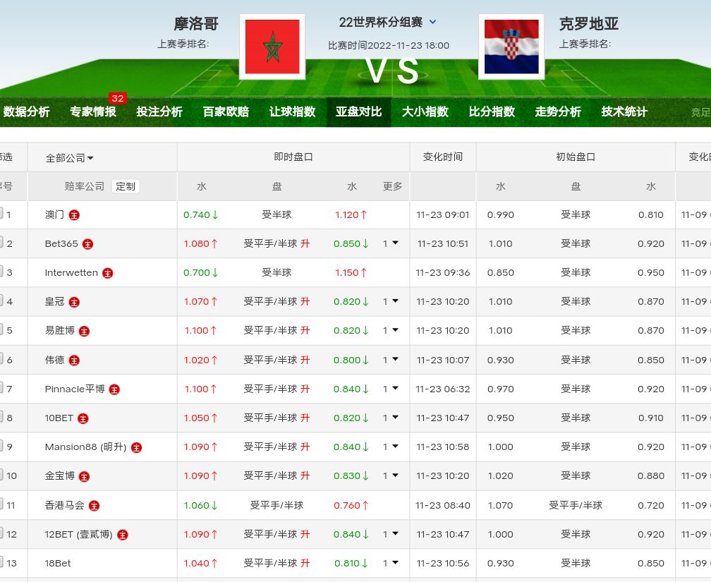 竞猜3009 世界杯 摩洛哥 VS 克罗地亚