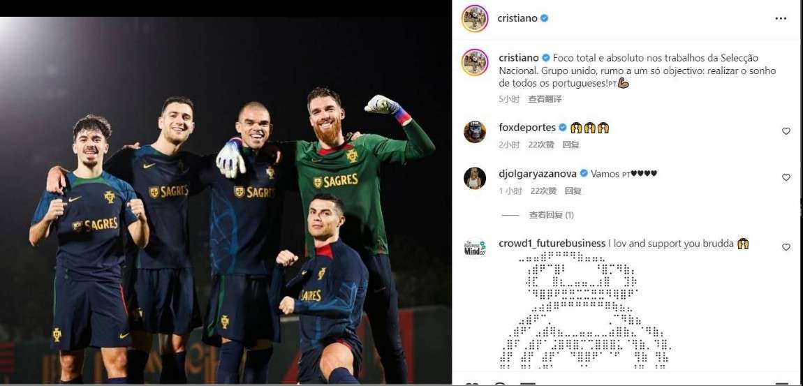 C罗社媒晒与国家队队友合照:为实现所有葡萄牙人的梦想