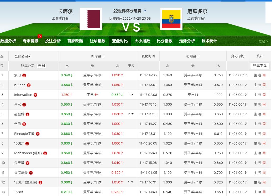 对比几天前水位变化比较大,当然现在也不是投注高峰期。比赛当天会不