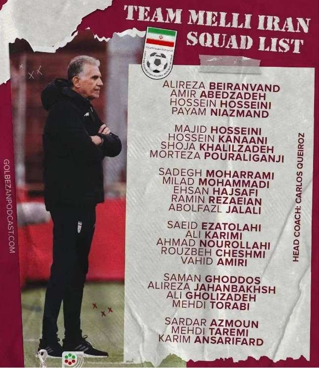 伊朗世界杯大名单:阿兹蒙领衔 仅有25人包括4名门将