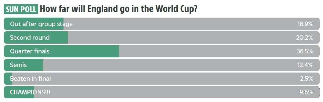 太阳报世界杯投票:超75%认为英格兰止步1/4决赛