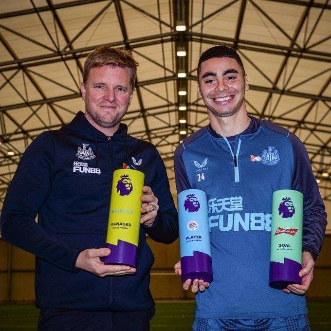 纽卡主帅&中场核心双双当选英超十月最佳