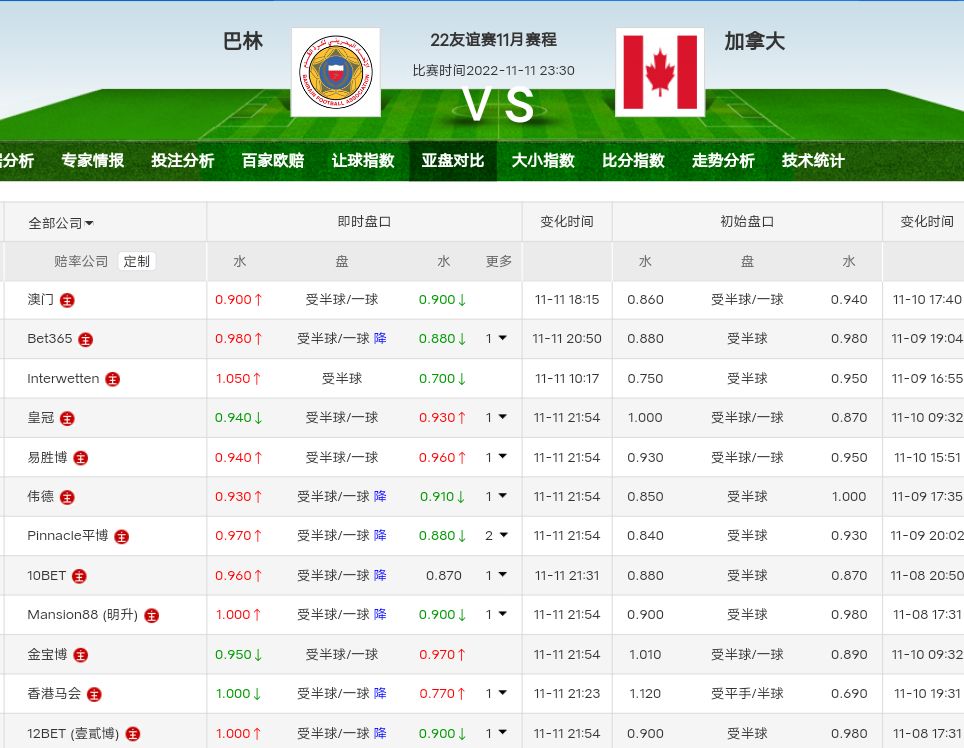 九月份巴林输给巴拿马,加拿大击败卡塔尔。本场加拿大应该比较热门。
