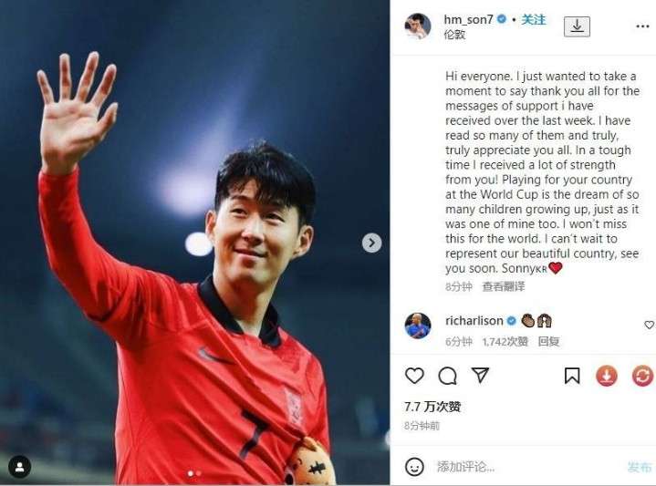 能赶上了?韩媒:孙兴慜有望佩戴面具出战世界杯