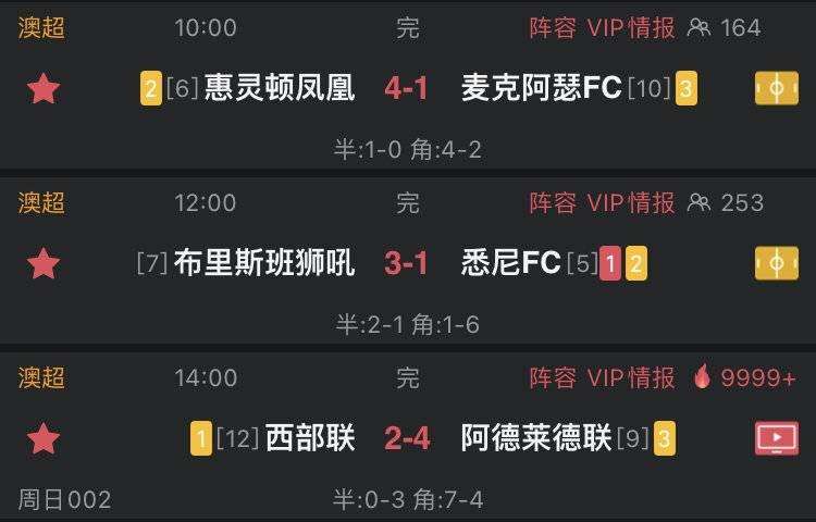 今日澳超6队联手造三场大比分 场均轰下5球
