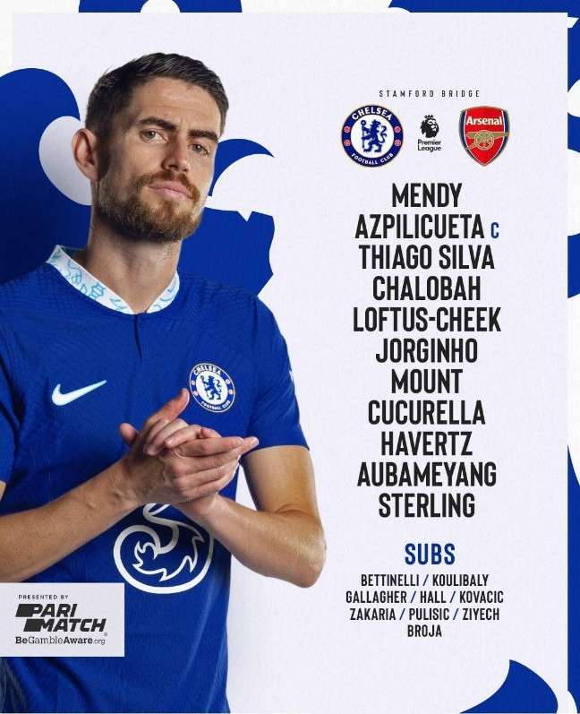 切尔西VS阿森纳首发:热苏斯、斯特林领衔 奥巴梅杨战旧主