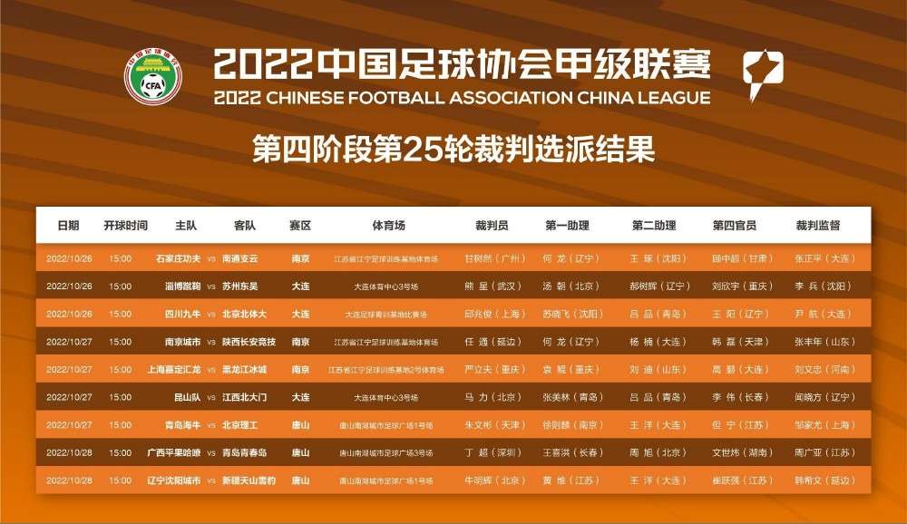 中甲裁判安排:执法海港7-0梅州的马力吹罚昆山VS江西