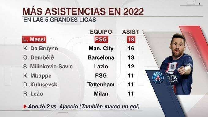 19助!梅西力压德布劳内领跑本年度五大联赛助攻榜