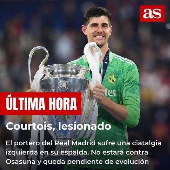 皇马官方:库尔图瓦坐骨神经痛 伤情有待进一步确认
