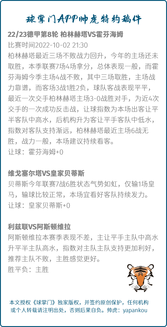 【北单推荐】今日德甲推荐:赫塔VS 霍芬海