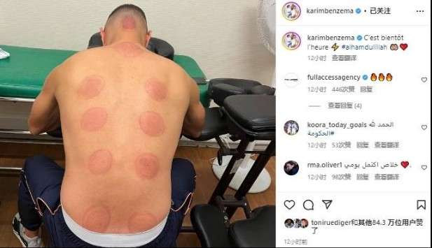 中医狂热者!本泽马晒拔罐照 后脑勺都不放过