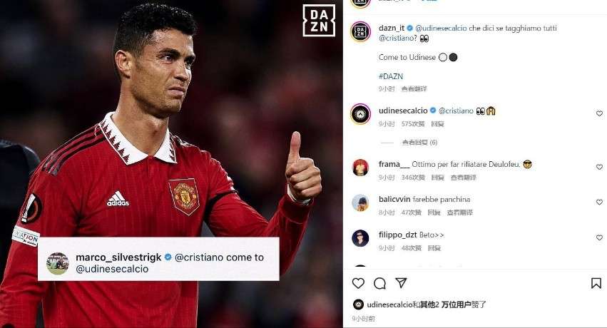 罗总桃李满天下!乌迪内斯门将社媒邀请C罗加盟