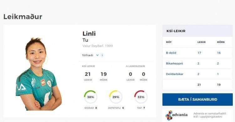 中国留洋女将涂琳俪17场16球斩获冰岛女甲联赛金靴