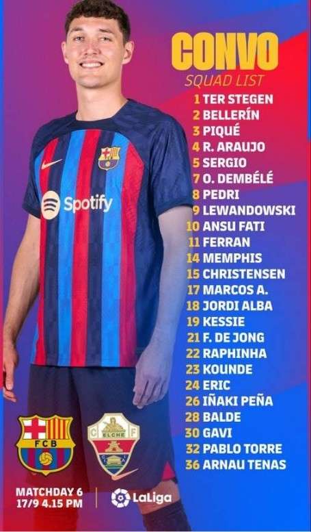 巴萨攻防两端状态出色冲击5连胜 埃尔切状态低迷做客难堪大任