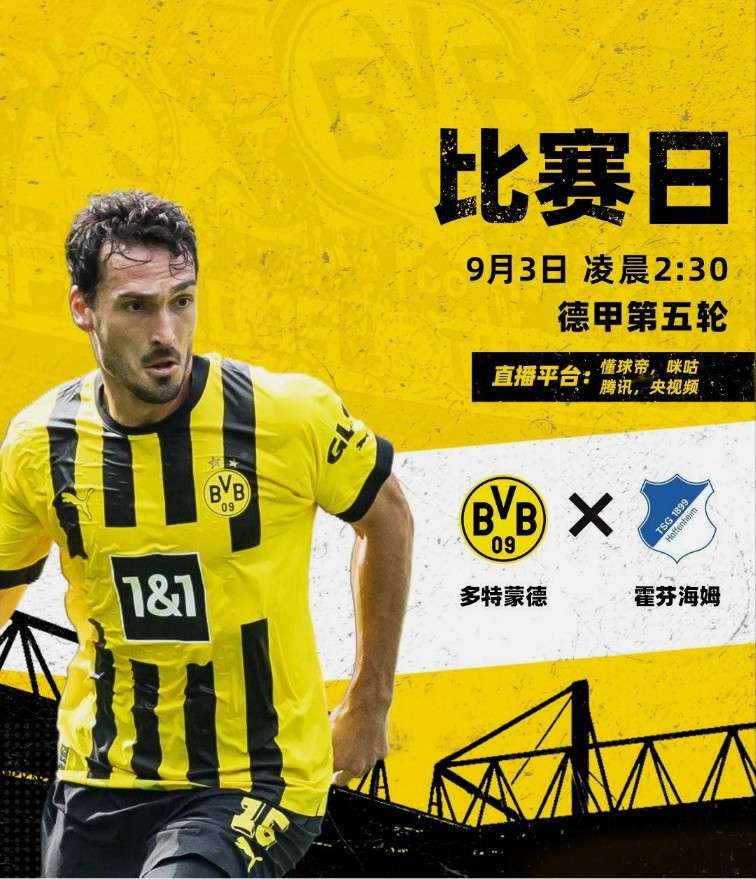 多特蒙德伤兵满营 霍芬海姆能否豪取四连胜?