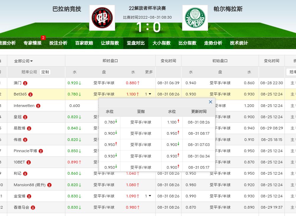 这场球黑了,365在临场两个小时升到1.1满水并且维持临场,盘口